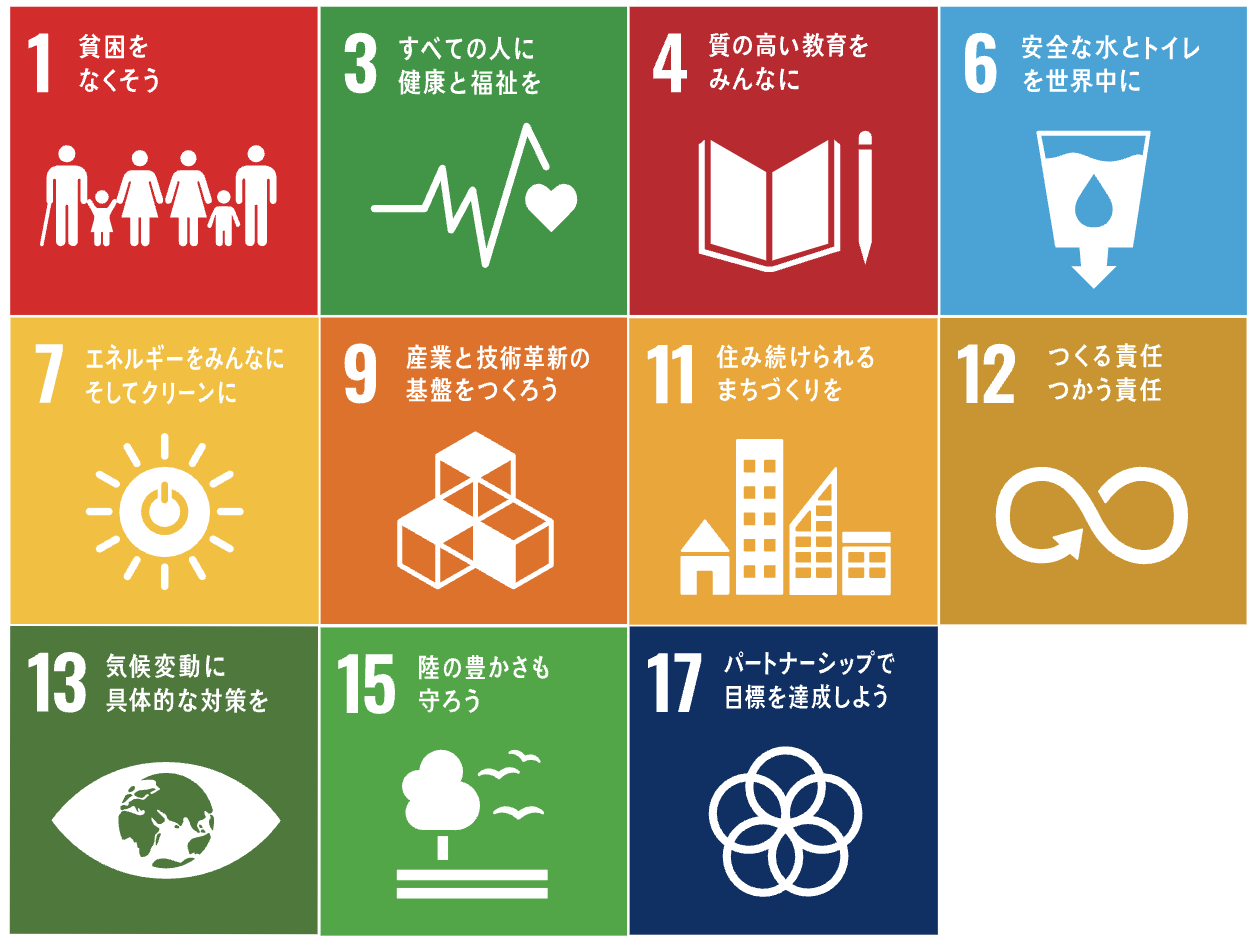 「持続可能な開発目標(SDGs)」の達成に向けて、SDGsで掲げる全17のグローバル目標のうち、11の目標を重点的に取り組んでいきます。
